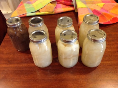 Fill the pot 1/4'way with water, set on grill with low/medium heat. Put jars in. Made sure the water level was at least 1/2 way up the jar but not higher than 3/4. Adjusted the heat to make sure it got hot but didn't bubble. First 20 minutes stirred gently every 5 minutes. Added 1/2 Tbsp of citric acid and stirred well. Another 20 minutes stirred three times.